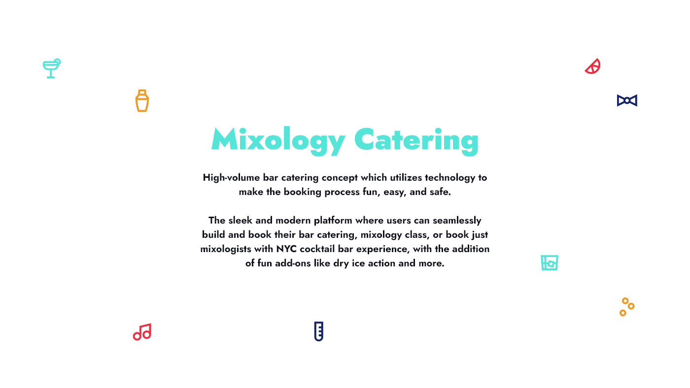 Mixology Catering is a High-Volume bar catering concept that utilizes technology to make the booking process fun, easy and safe